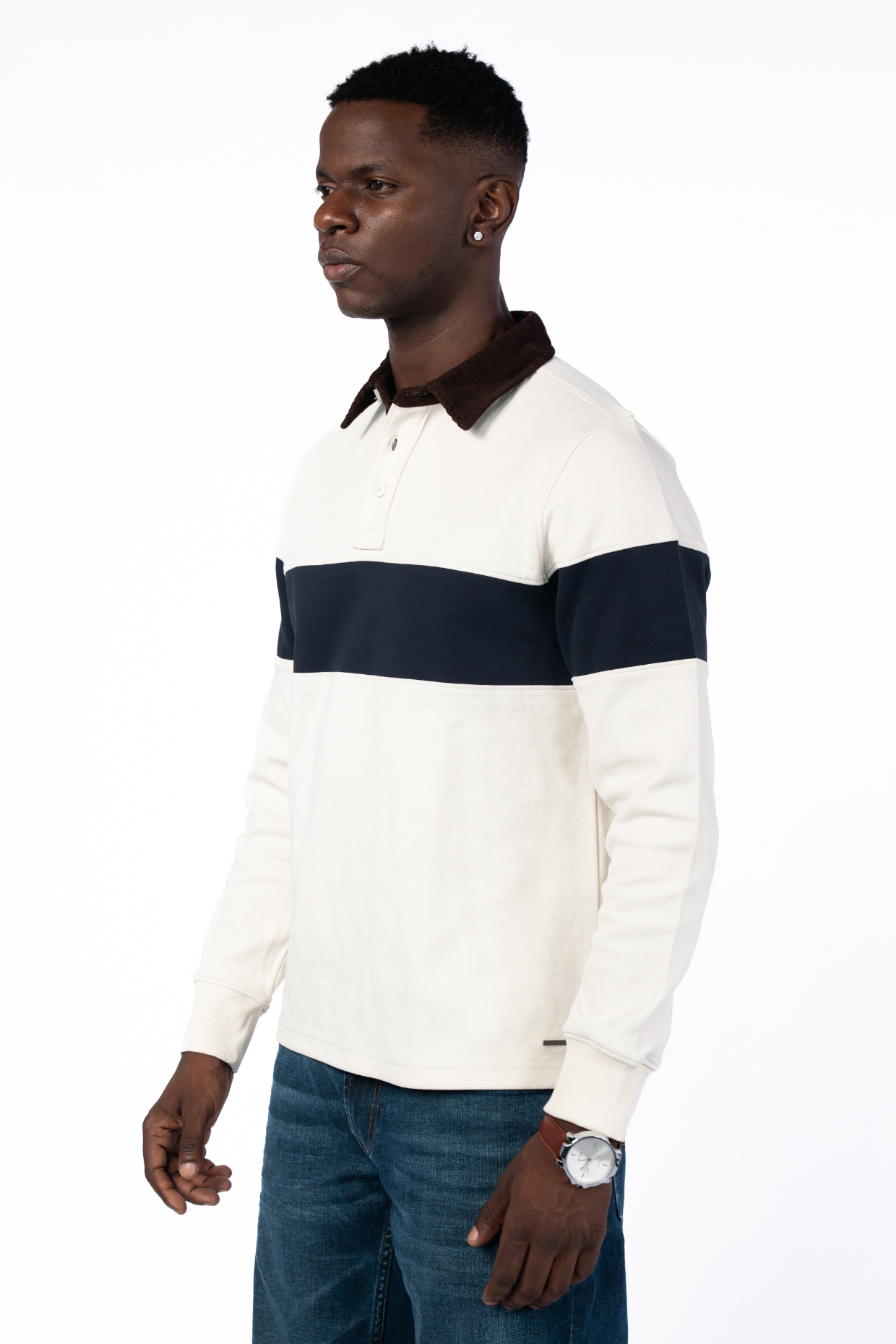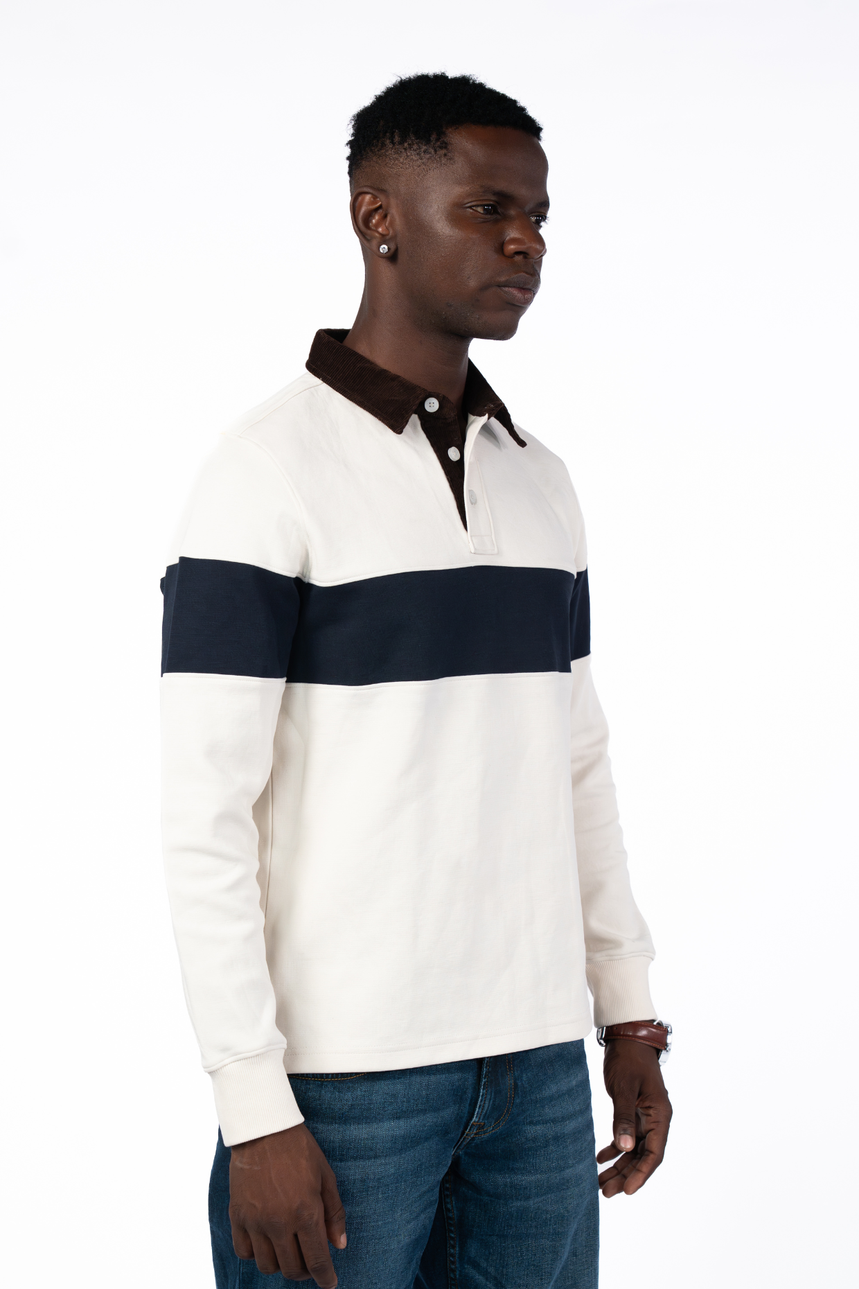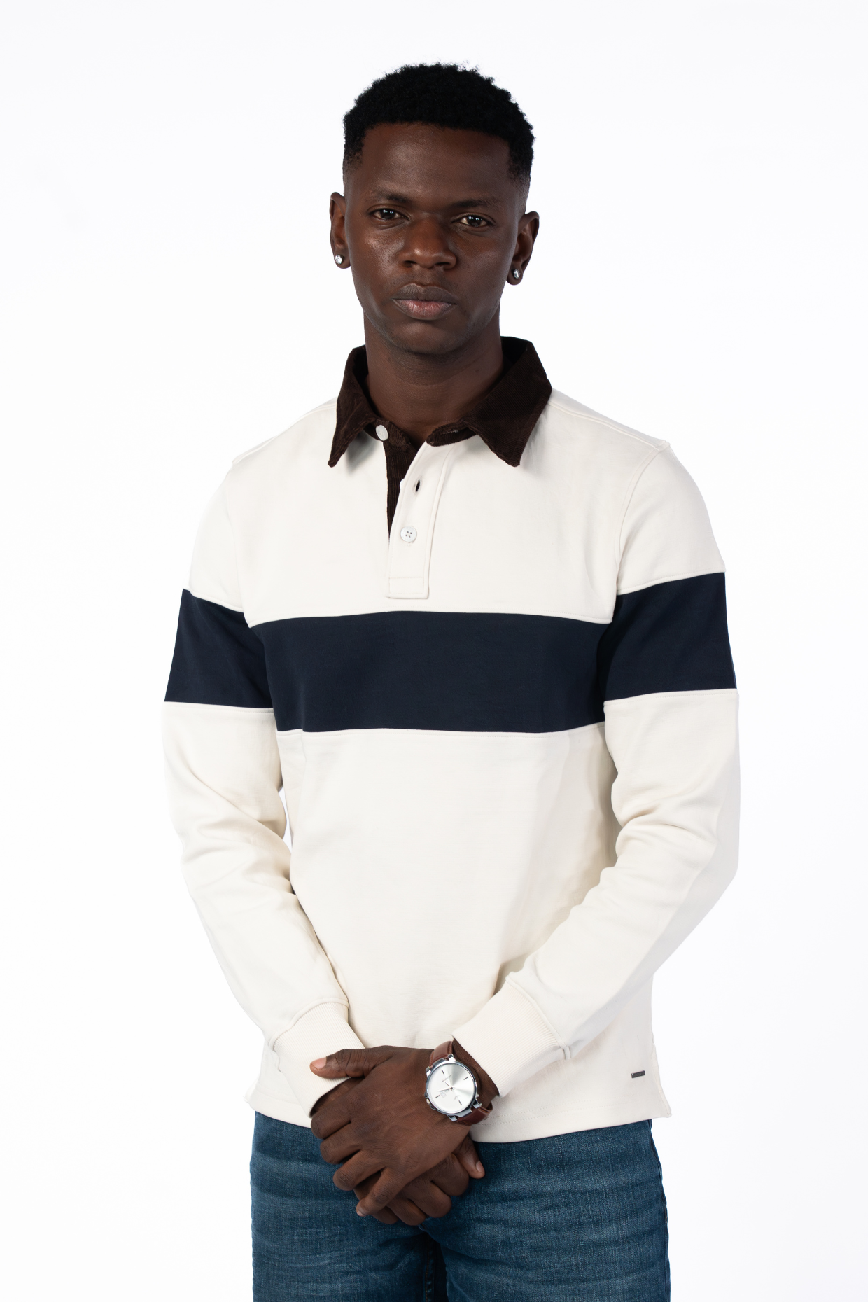 Redefine casual comfort with the Orlando Offwhite Corduroy Collar T-Shirt, featuring a clean panelled design and structured collar.