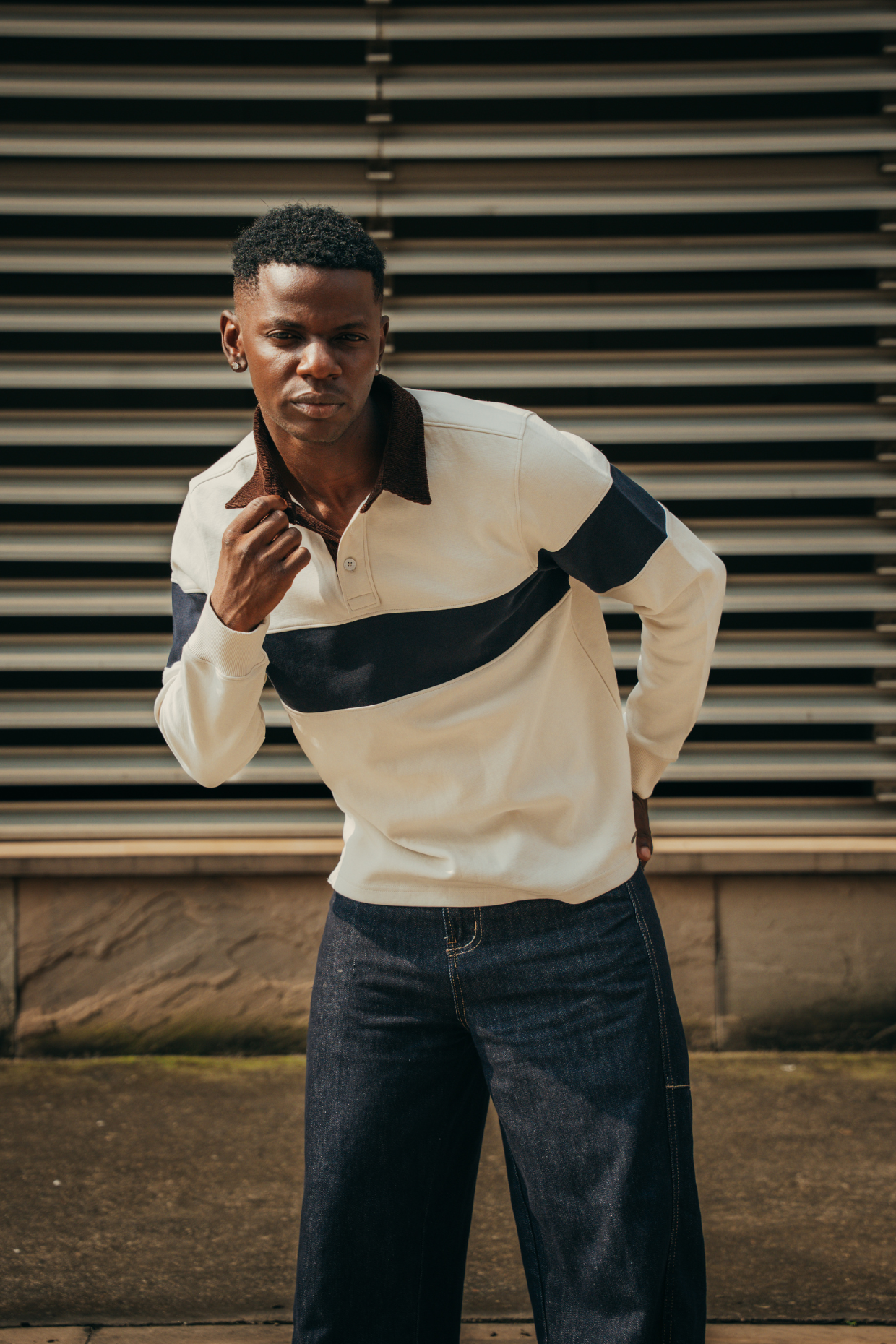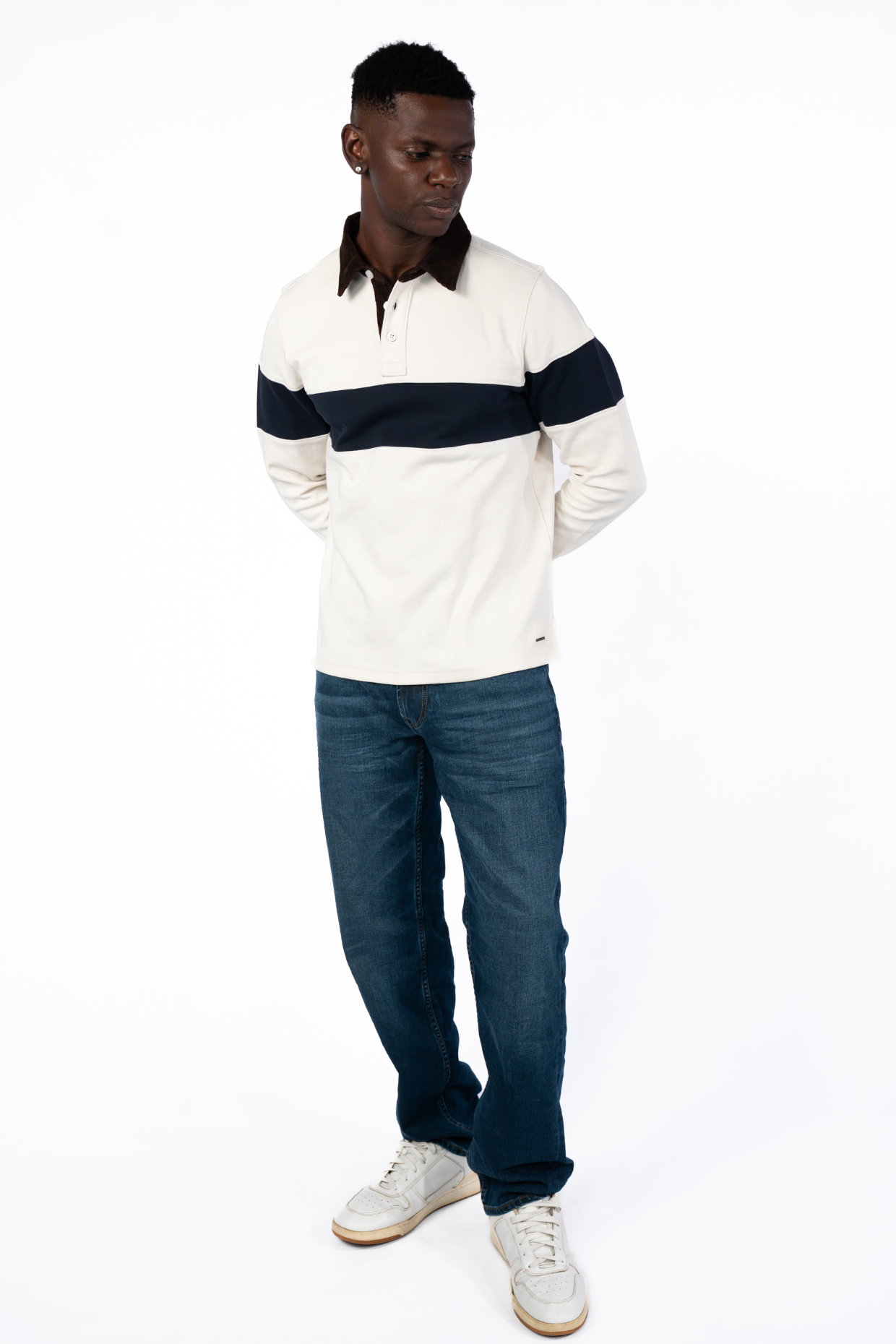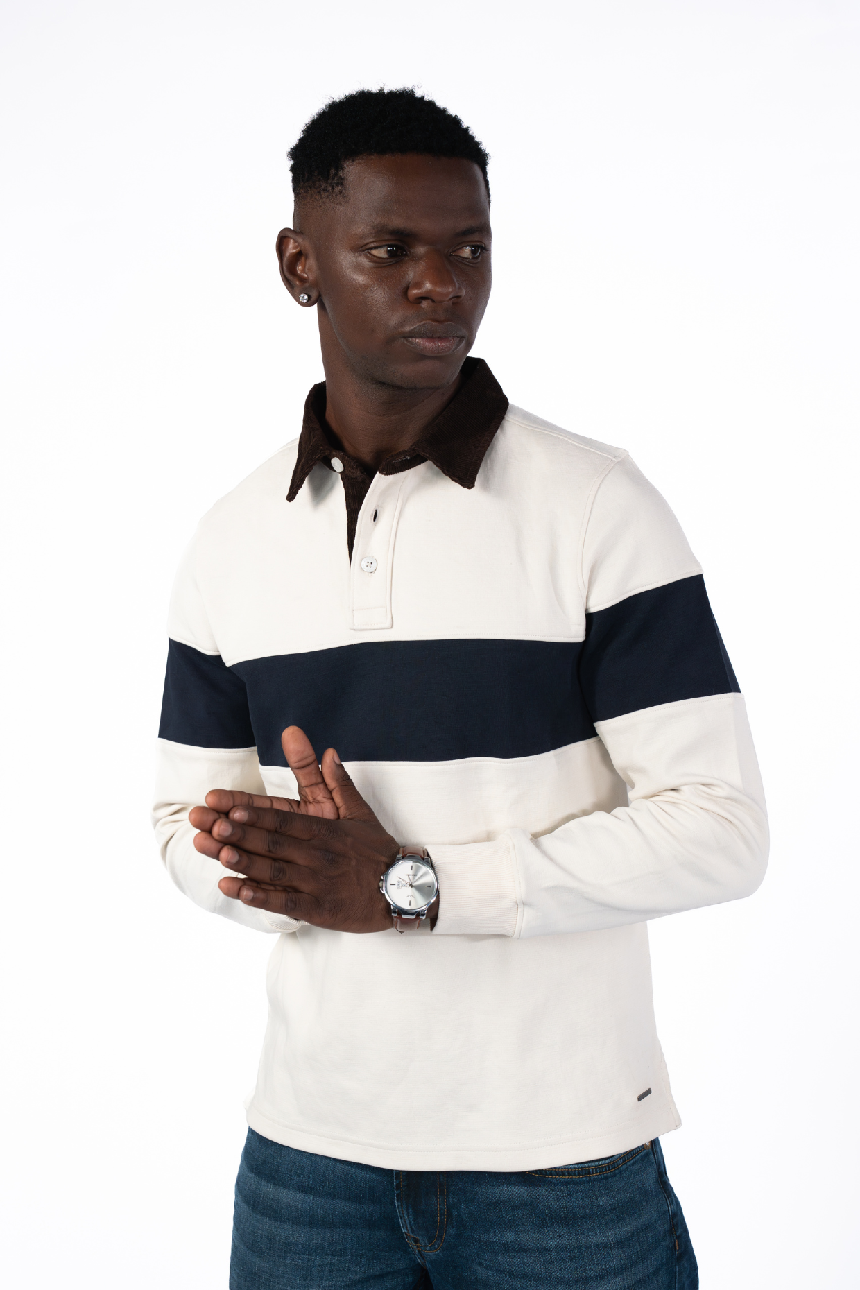 Redefine casual comfort with the Orlando Offwhite Corduroy Collar T-Shirt, featuring a clean panelled design and structured collar.